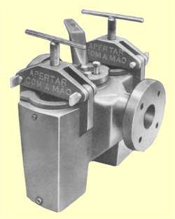 Filtro tipo Duplo Cesto, Corpo em Aço Carbono ASTM A 216 Gr. WCB.